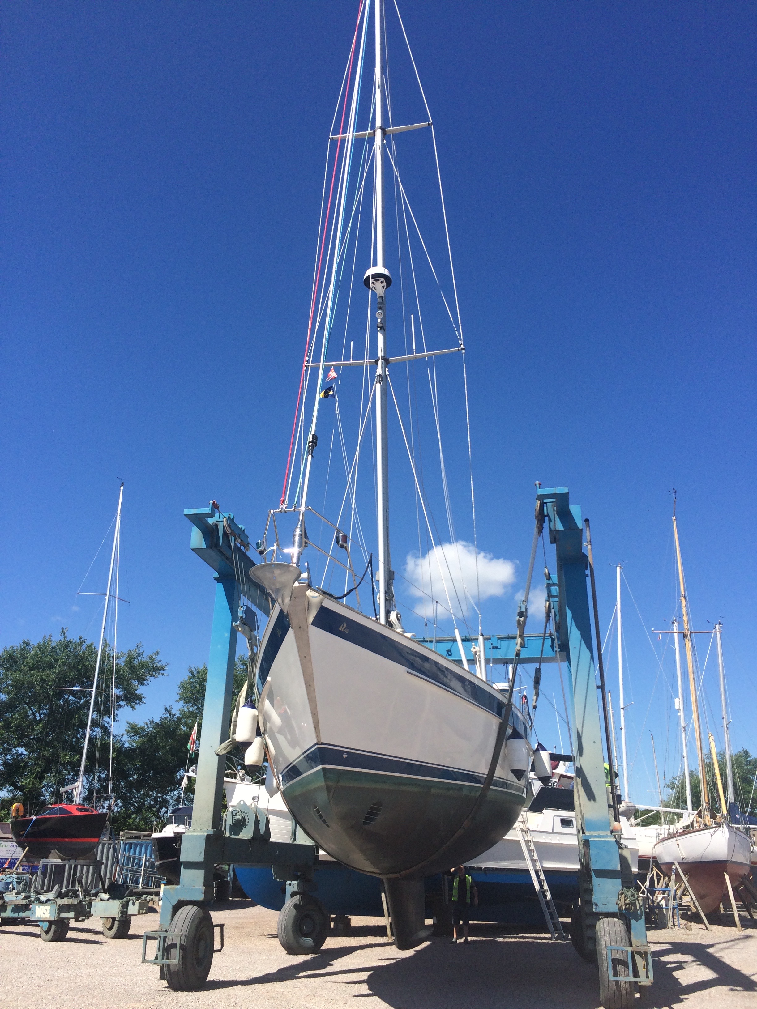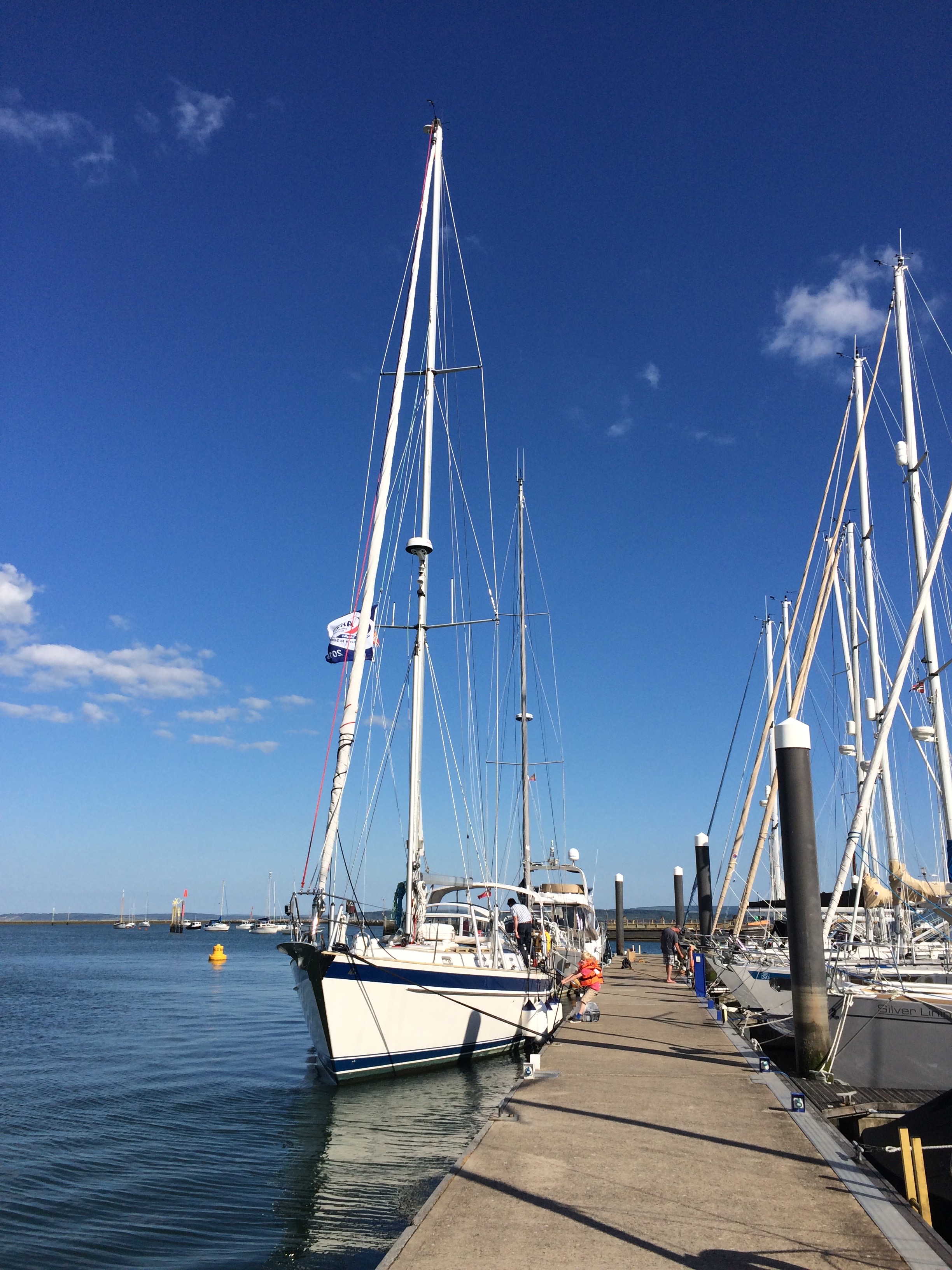 With 48 hours to go, the minor leak is all mended (thanks to Mac, saint Clive and saint Vincent) and we have been safely moved and lifted back into the water. Phew, all good, no more water in the engine room. Huge thanks to Paul for driving down for the day and helping to prepare for the lift and then putting on sails, pumping up the dingy and a variety of jobs easier with more adults than children! Much appreciated Paul.