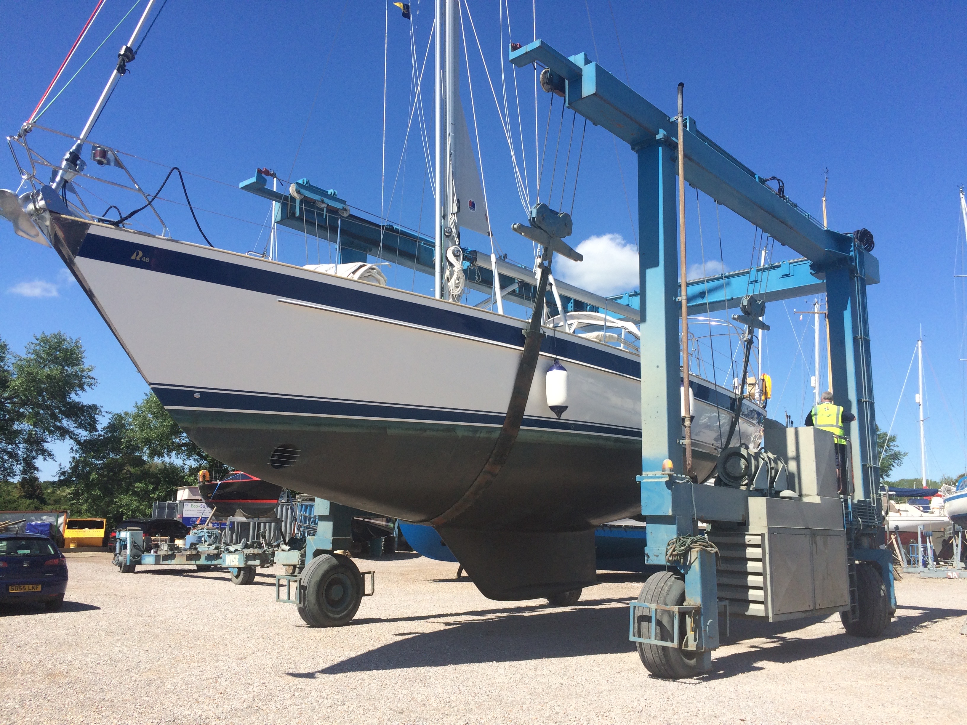 It is always quite a nervous shock to see your boat being driven across a car park, but all beautifully done. How strong are those straps??? (How many books have I loaded aboard for Hugo…)