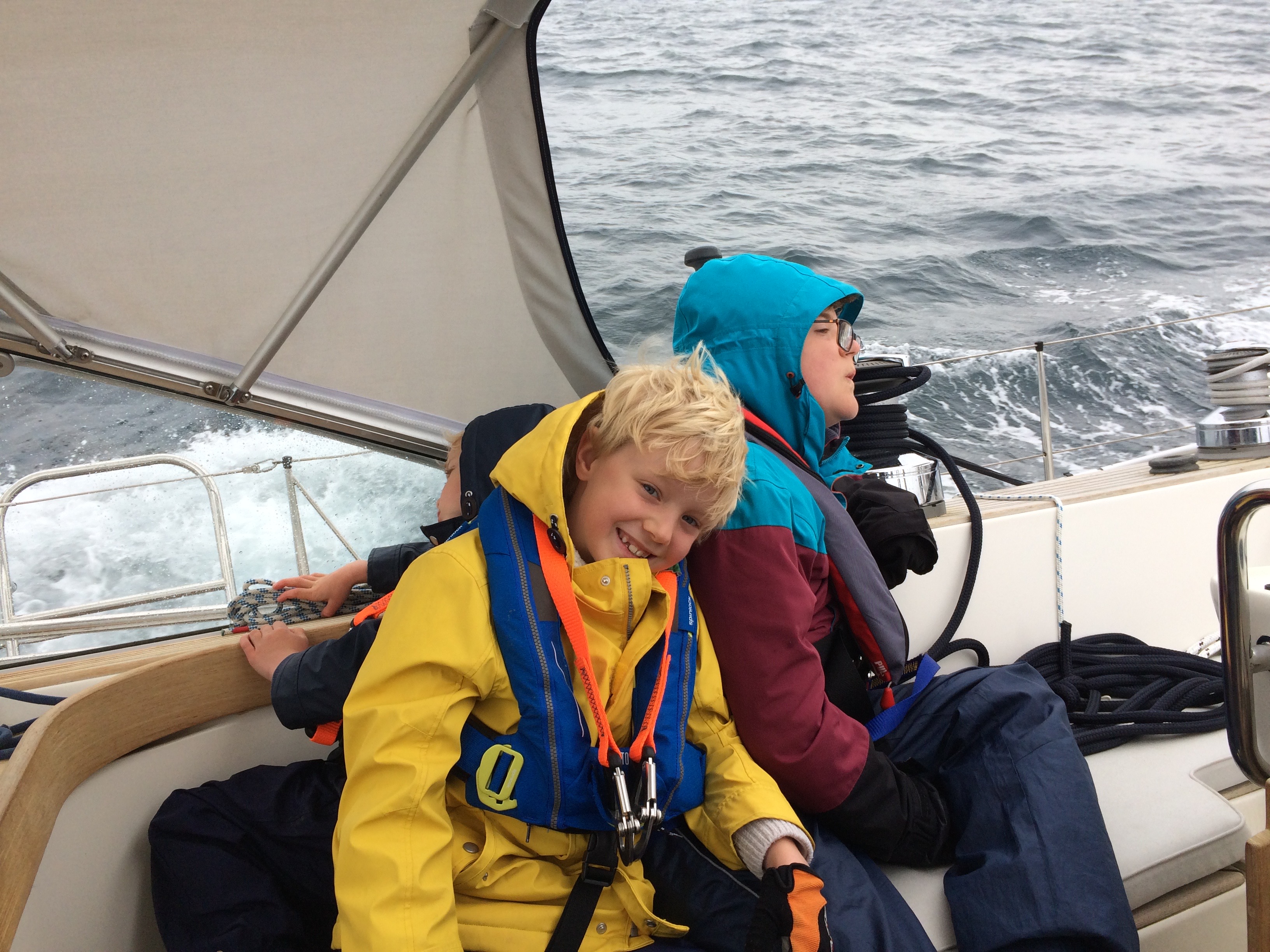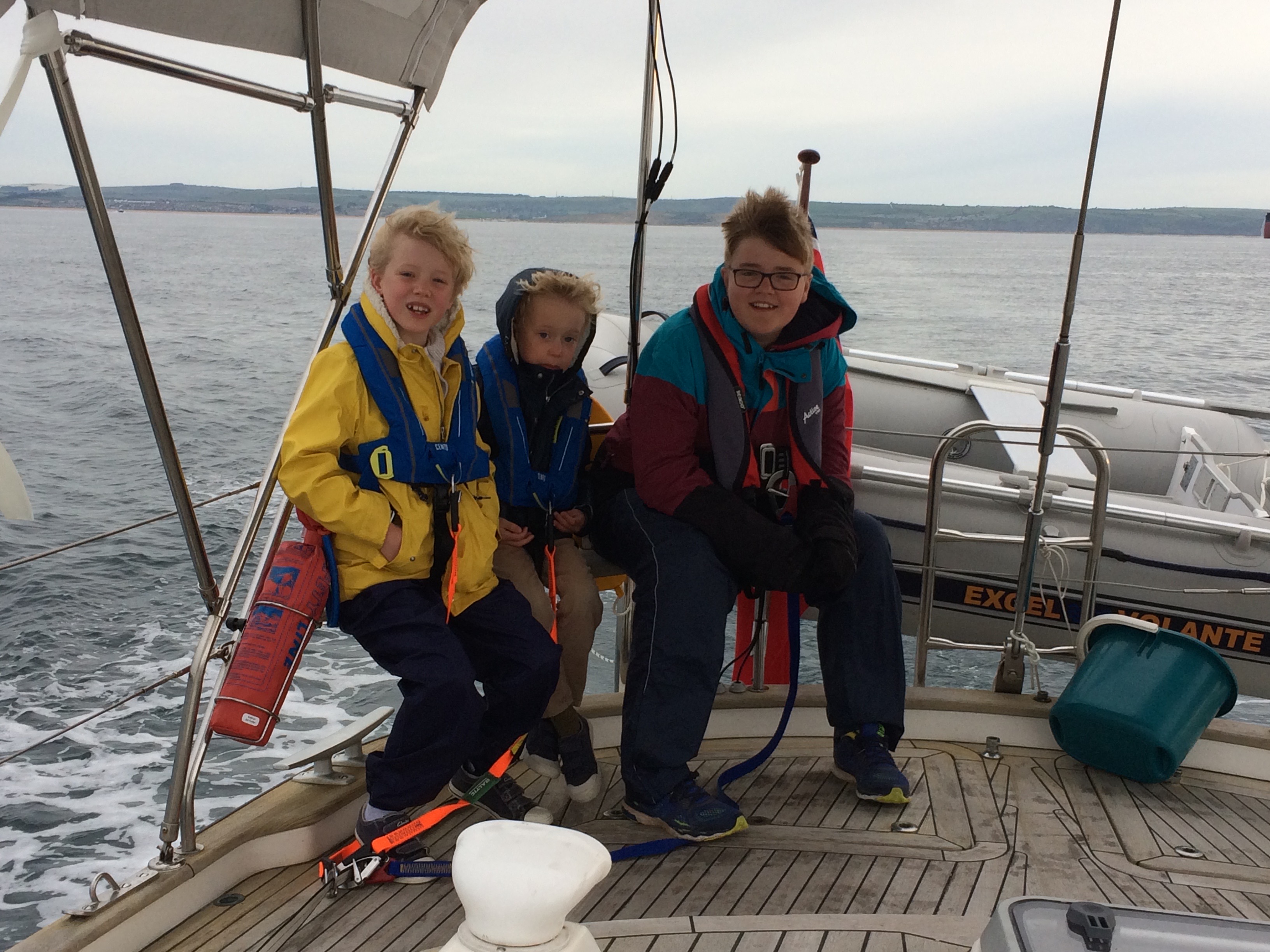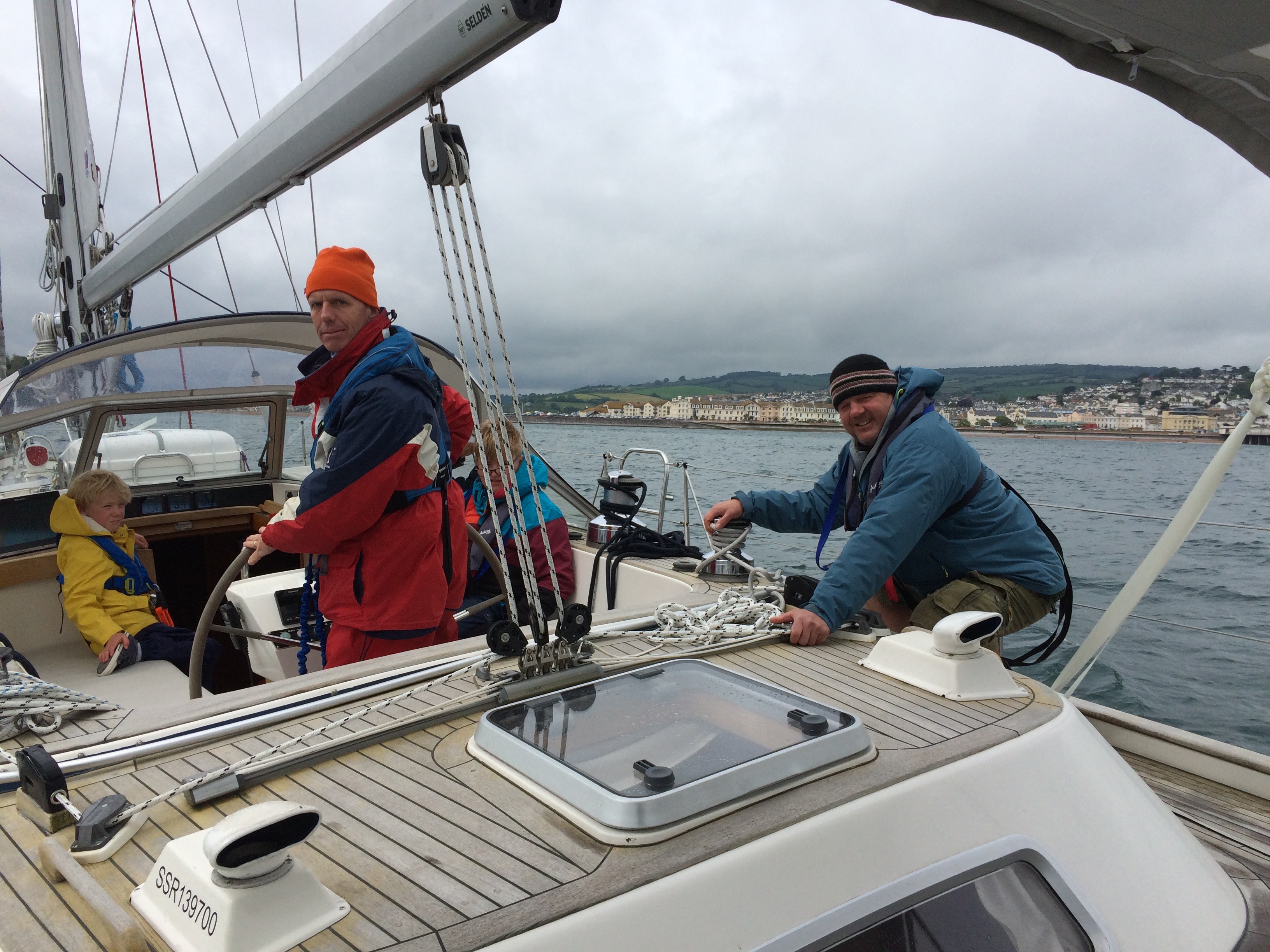 It was an early start to get round Portland Bill (notorious for the English channel’s roughest water) at slack tide. All crew fully prepared today with seasick tablets and warm clothes, as we headed into a Force 6 to do a passage of 50nm. We made cracking time, with speeds up to 9.4kts and arrived much to my sister Sarah’s surprise 4 hours early!!