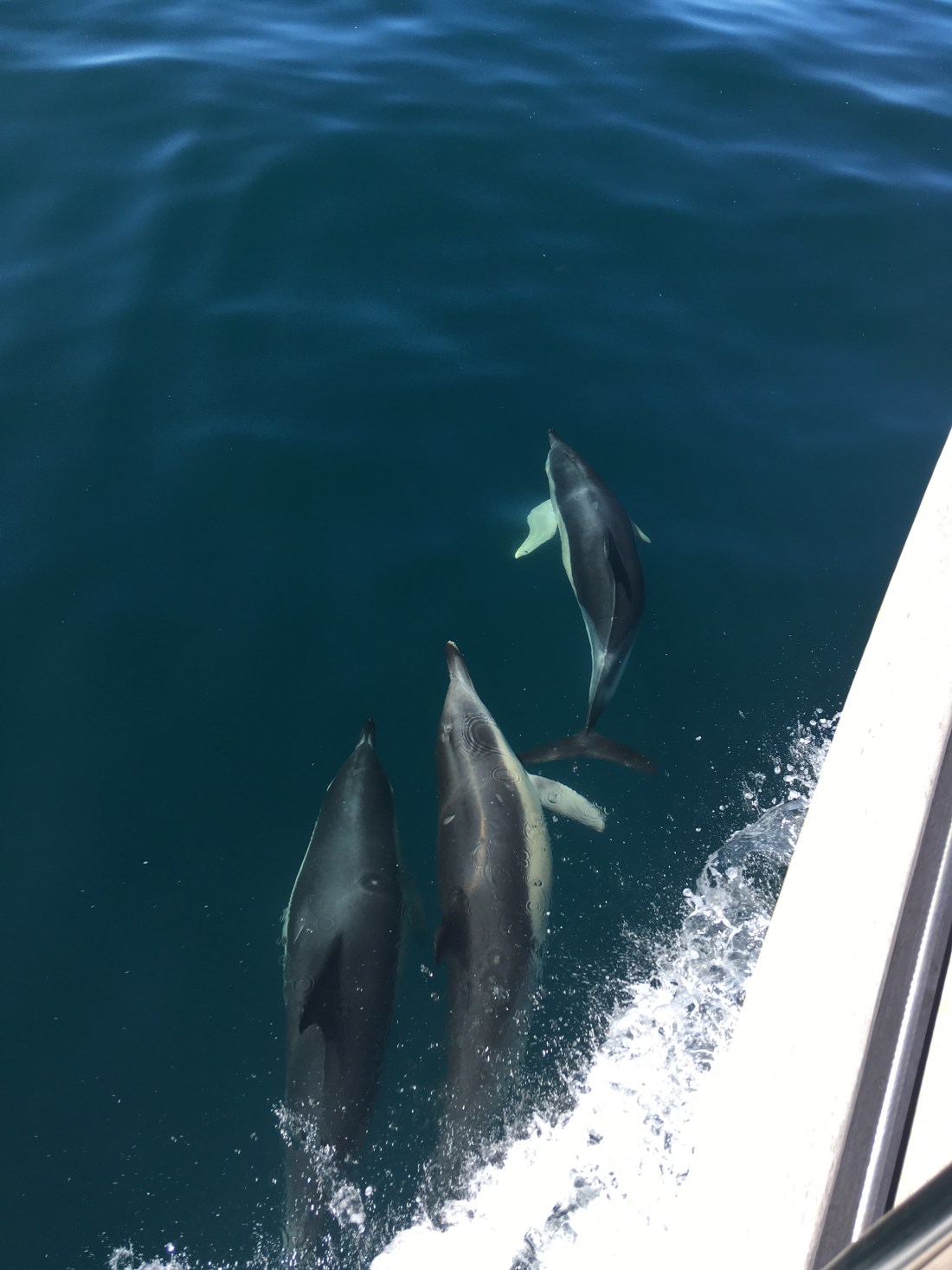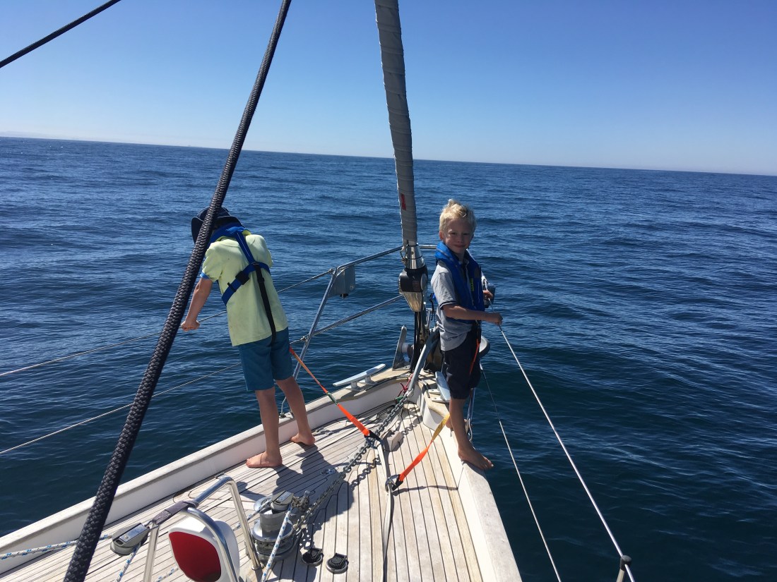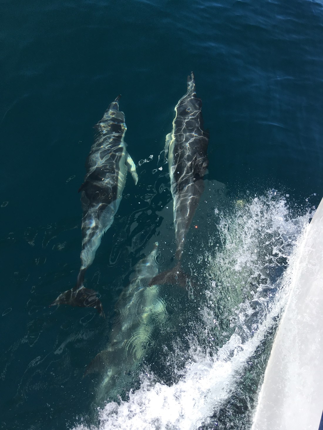 Whilst sailing to and from Porto (or rather Leixões) we were joined by a playful pod of dolphins who jumped and swam with us for over an hour. They liked the 8kts we were cruising at and stayed playing in our bow wave, keeping us enthralled. The water was so crystal clear you could see them swim and take turns surfing and spinning in the waves, both above and below. Hugo’s comment to me captured why we were doing this trip when he said, “mummy who needs to watch Blue Planet when you can see this!” Felix insists he is fluent in ‘dolphin’ with his excited squeaks and popping noises too. With Chloe onboard the dolphins swam with us every day and we were even treated to a mother and baby dolphin too, together with a large pod of seven or more dolphins, it was truly magical.