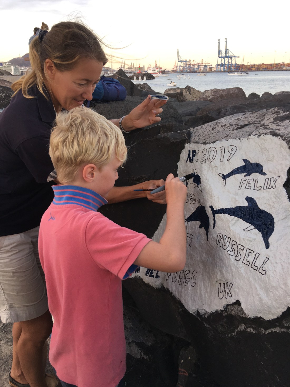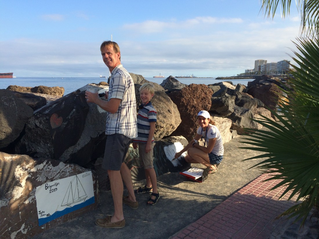 Whilst still being busy with an endless list of things to sort, check or do on the boat, the end is very nearly in sight and we made time to join the tradition of painting the rocks in Las Palmas marina with our boat emblem.