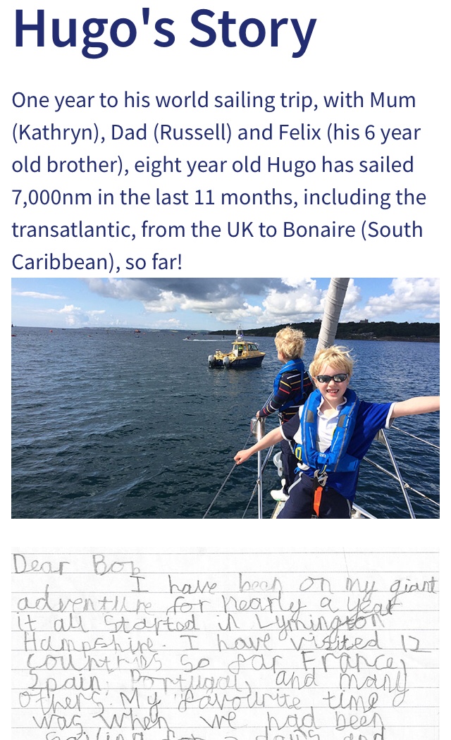 Hugo’s Story to “Bob the buoy” in the Junior RYA section won star letter of the month (May). It is printed on their website with some of his sailing photos.