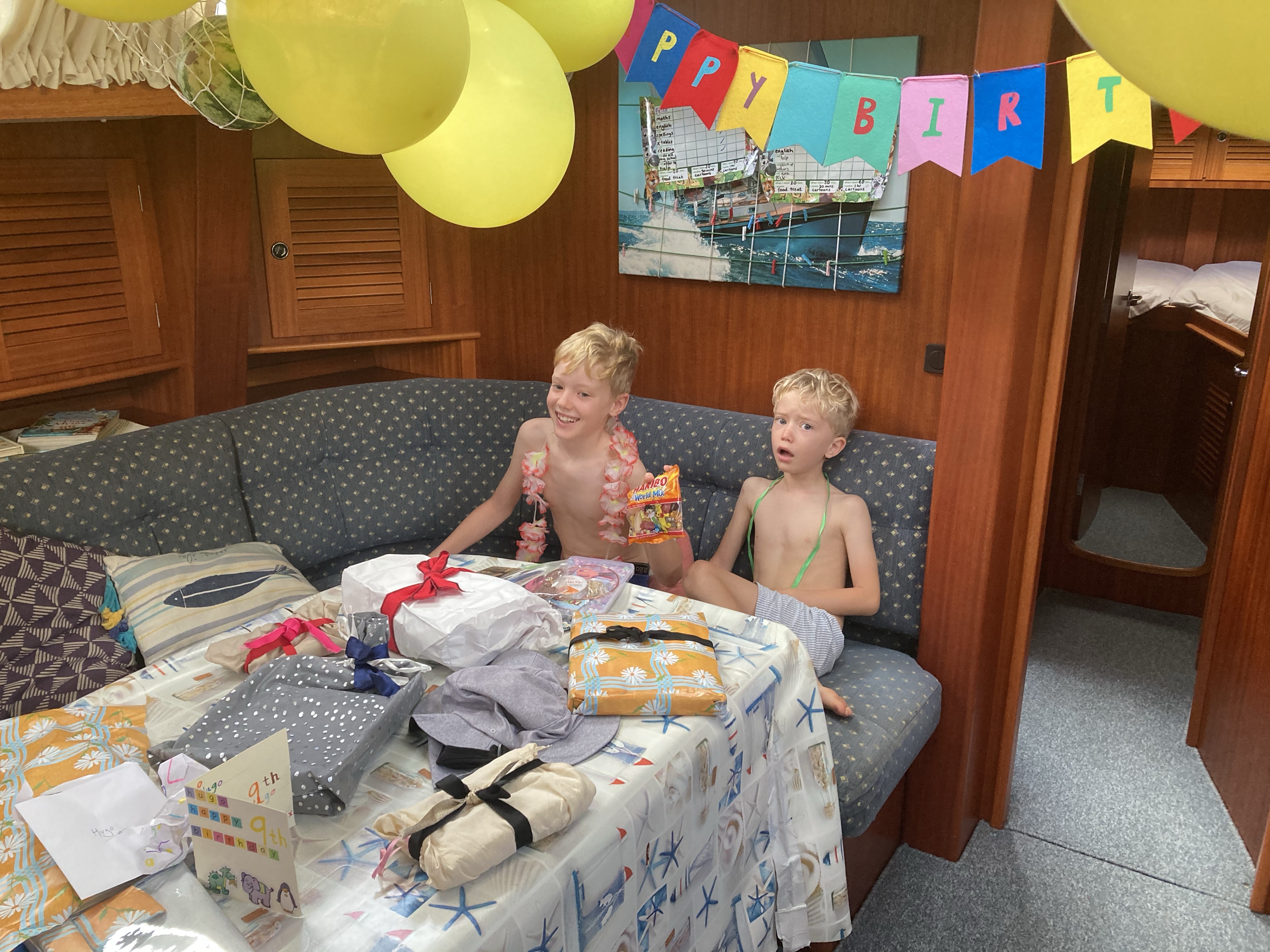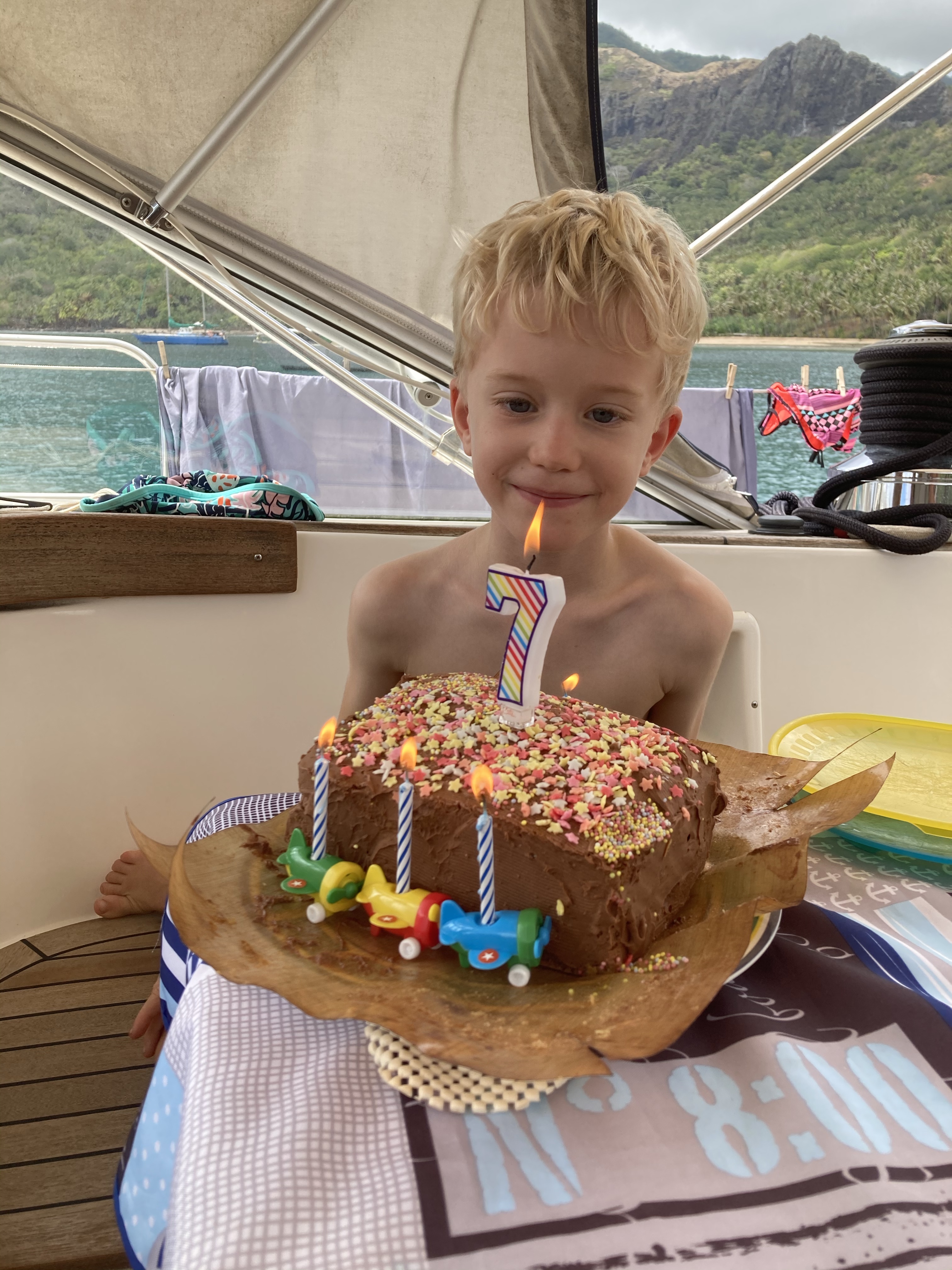 Trying to organise children’s birthdays when you have no ability to buy anything or receive any post and you are living on a boat on a remote island in the Pacific is time for being creative. It’s also slightly terrifying as a parent used to the commercial trappings of the western world birthday merry-go-round. Luckily I had hidden away a few things from ages ago buts it’s amazing how happy the children were with only a couple of simple gifts. A book, some sweets and their first ever pen knife and they were ecstatic.