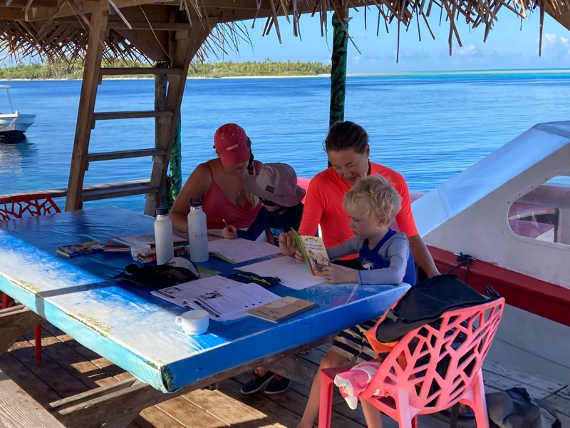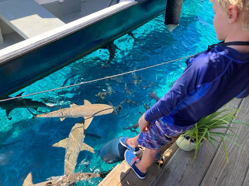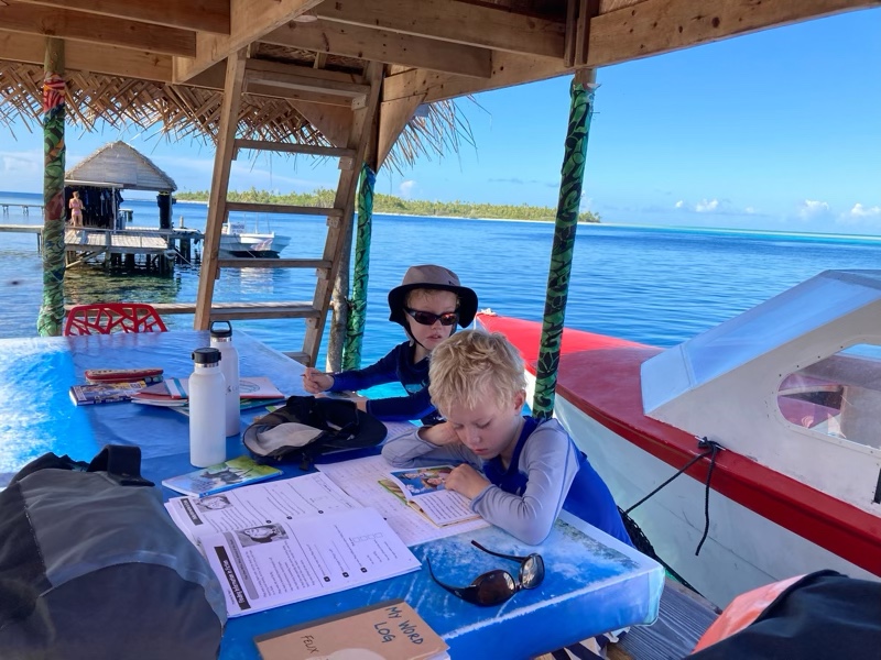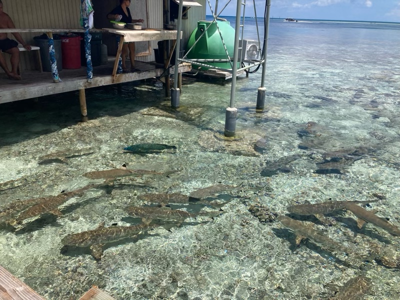 The boys sat and did homeschooling whilst we dived, to the owners amazement! They did get to feed some fish ends to the smaller reef sharks beside the restaurant. Even the huge napoleon wrasse were swimming amongst the sharks vying for bits of food. It’s quite a spectacle to behold.