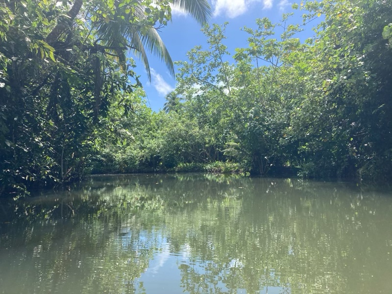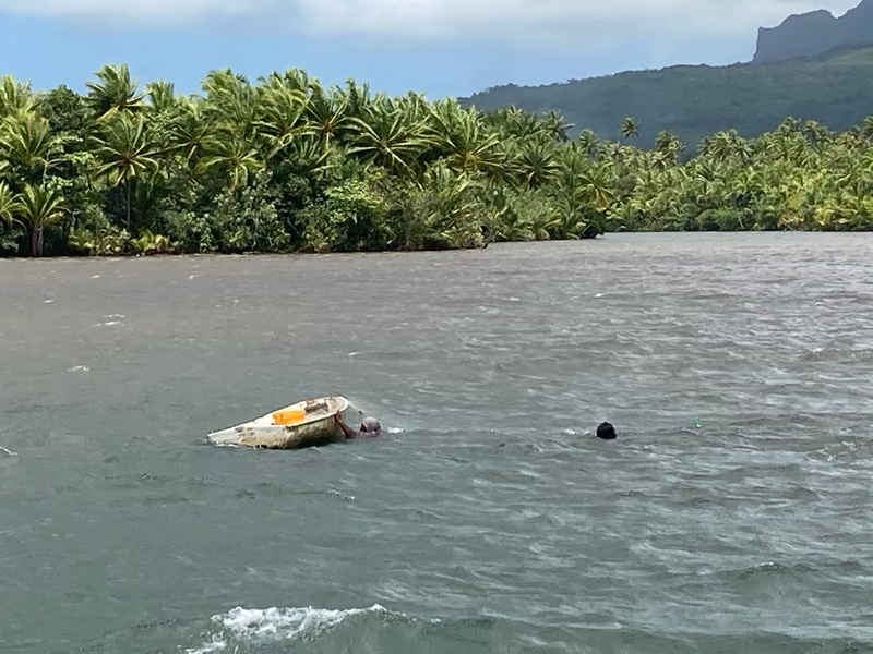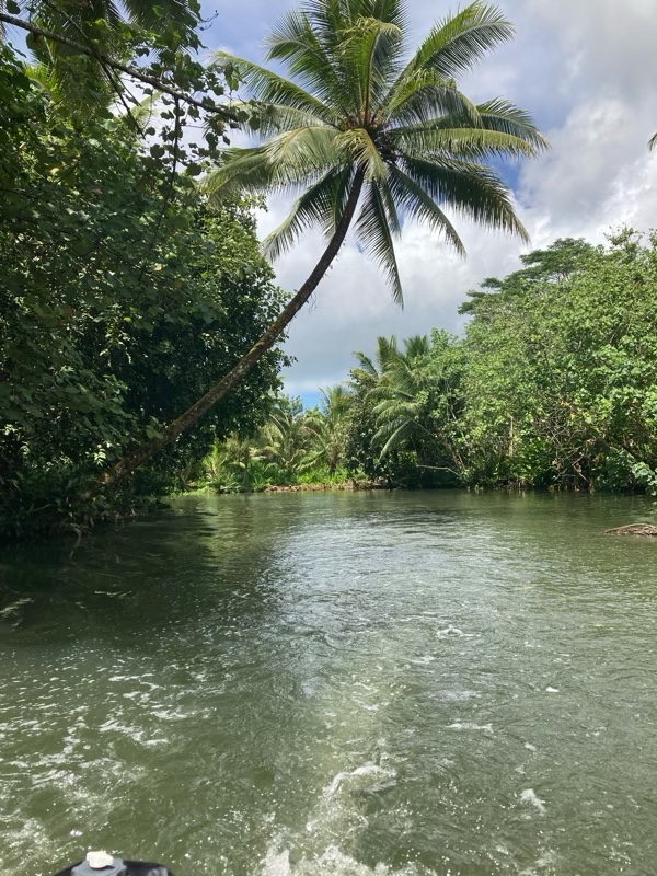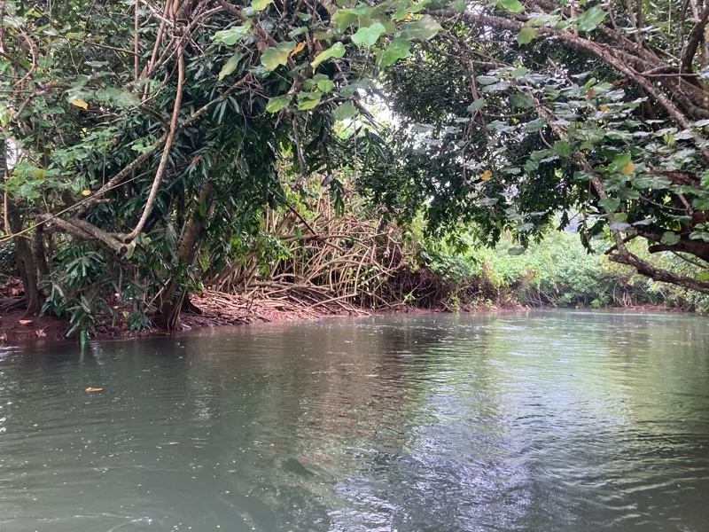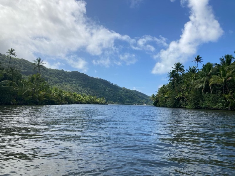 Never mind we headed elsewhere. At the head of the valley lies the Apoomau river which is the only navigable river in French Polynesia. We anchored and decided to explore further by rowing up the river.
