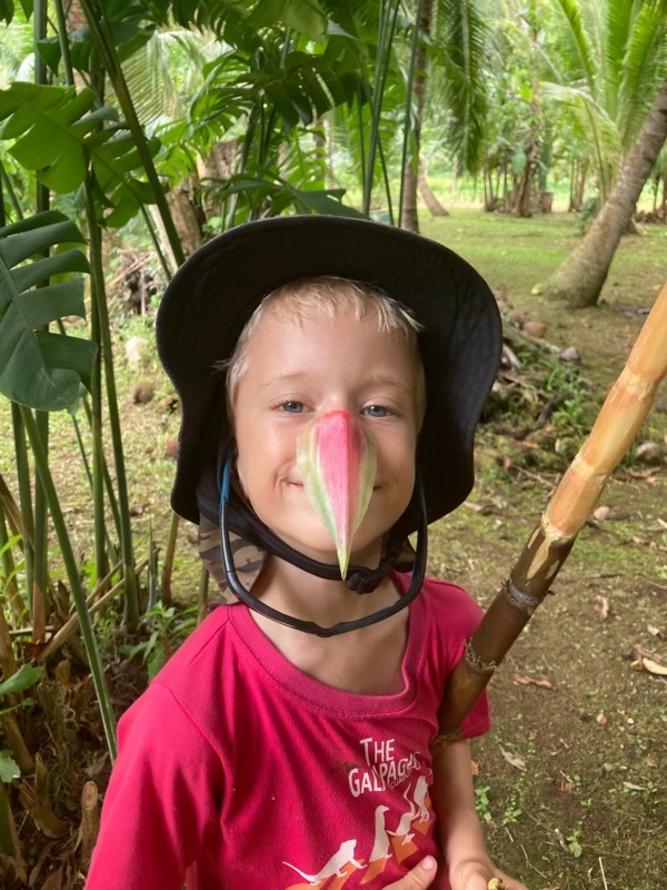 Back on the river we got chatting to André who was working on a farm beside the river. He kindly offered us fruit and we happily went with him round the farm (although picture semi chaotic jungle rather than ‘farm’) picking bananas, rambutans, coconuts, avocado, guava, papaya, cucumbers and even green beans. We were so delighted and rowed the mile back carefully balancing all our hoards of goodies and five people in a small inflatable dinghy!