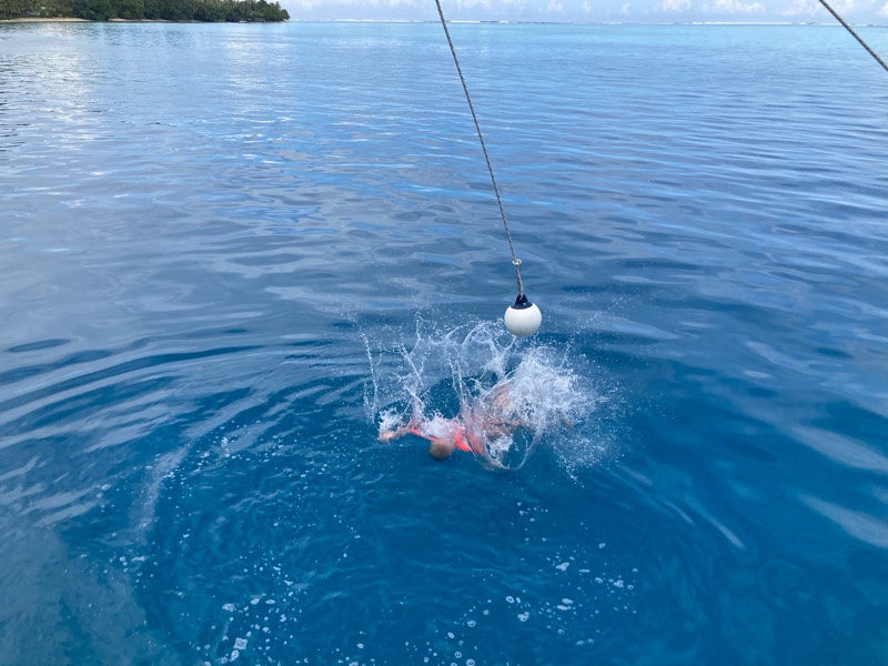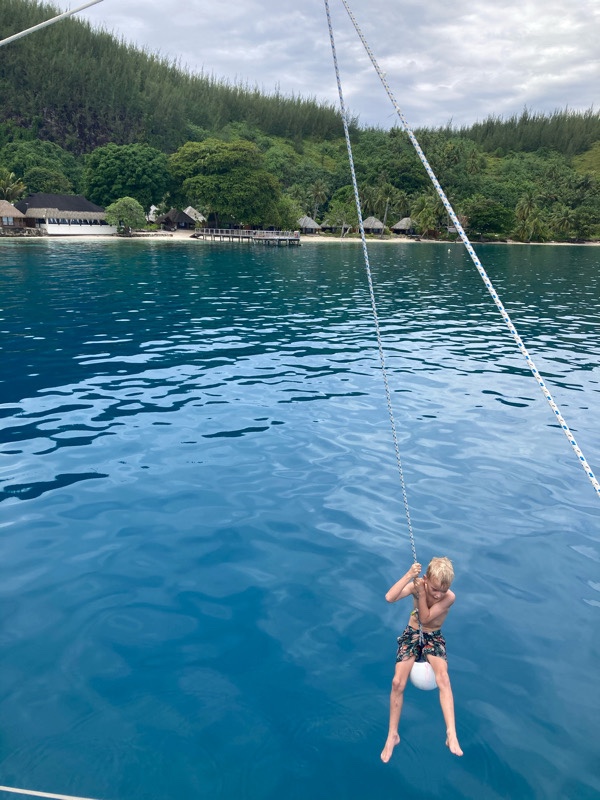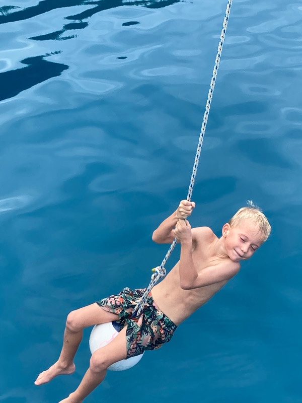We spent our last weekend aboard back in Avea bay, such a lovely peaceful beach spot. We’ve made friends with a Belgium family on the island and took their family sailing with us to Avea bay. Once anchored Russell soon set up the spinnaker pole swing and the children had great fun swinging and jumping into the sea.