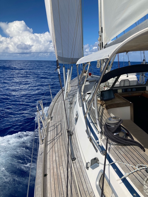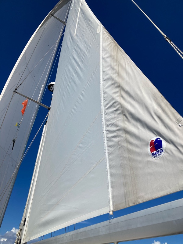 1. The sails have been superb, one tiny pocket repair to one baton and that’s it for 15,000+ miles!!! Sanders sails are fantastic. For the long ocean passages downwind we did put pipe lagging on the spreaders to protect against chaffing, and it worked – no damage at all.