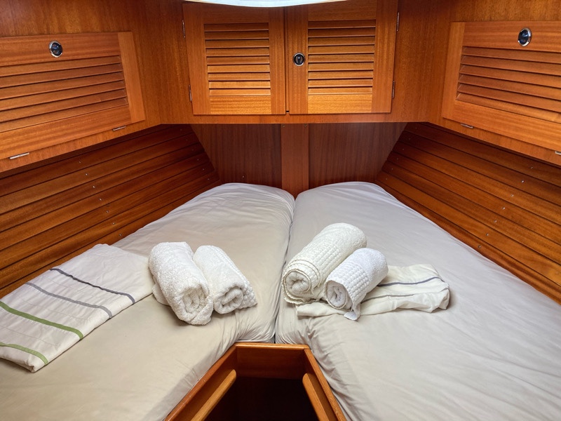 For the last two years this has been our home. The boys have enjoyed sharing the bunk room leaving the forepeak cabin for guests or as a playroom.