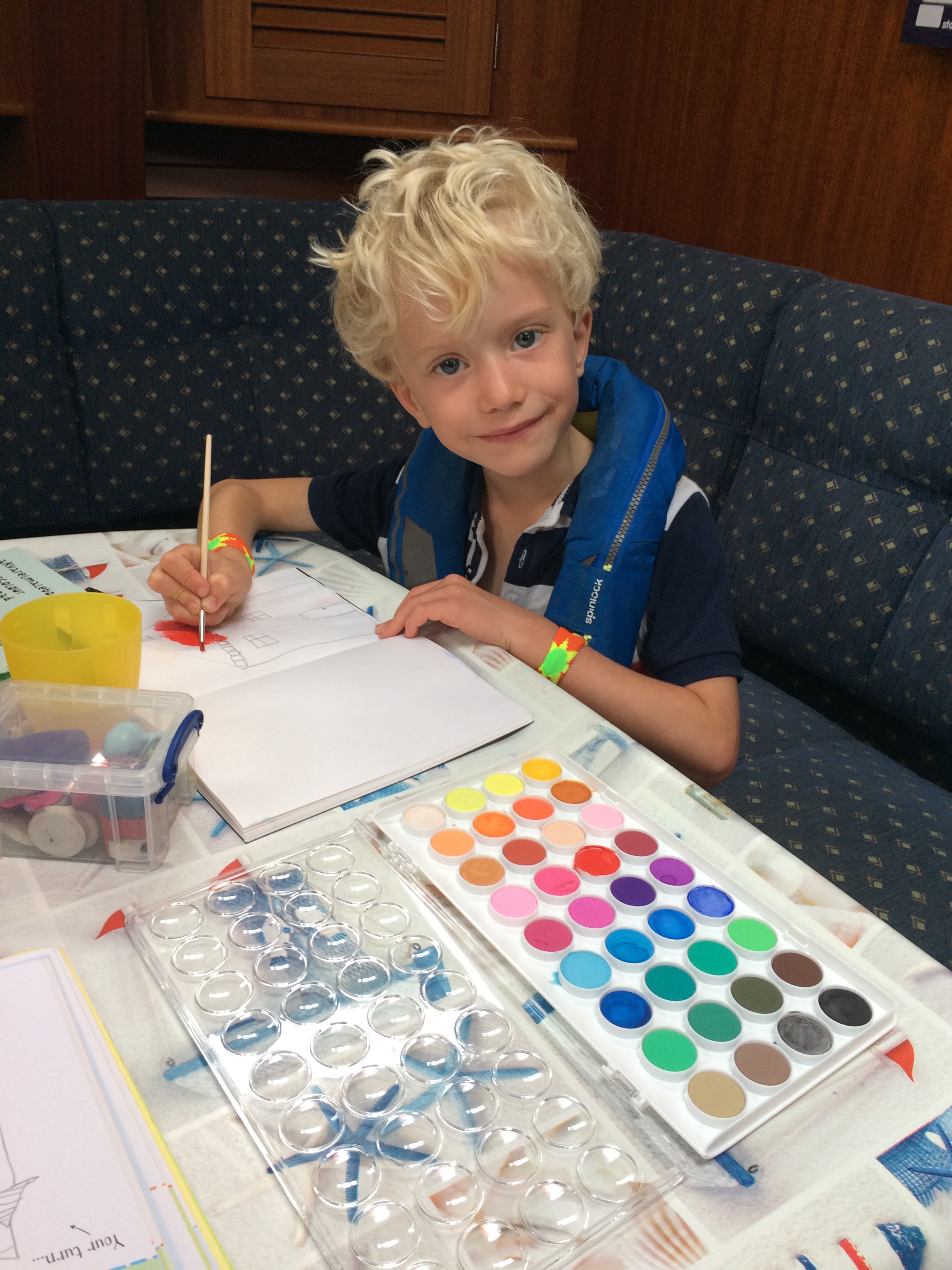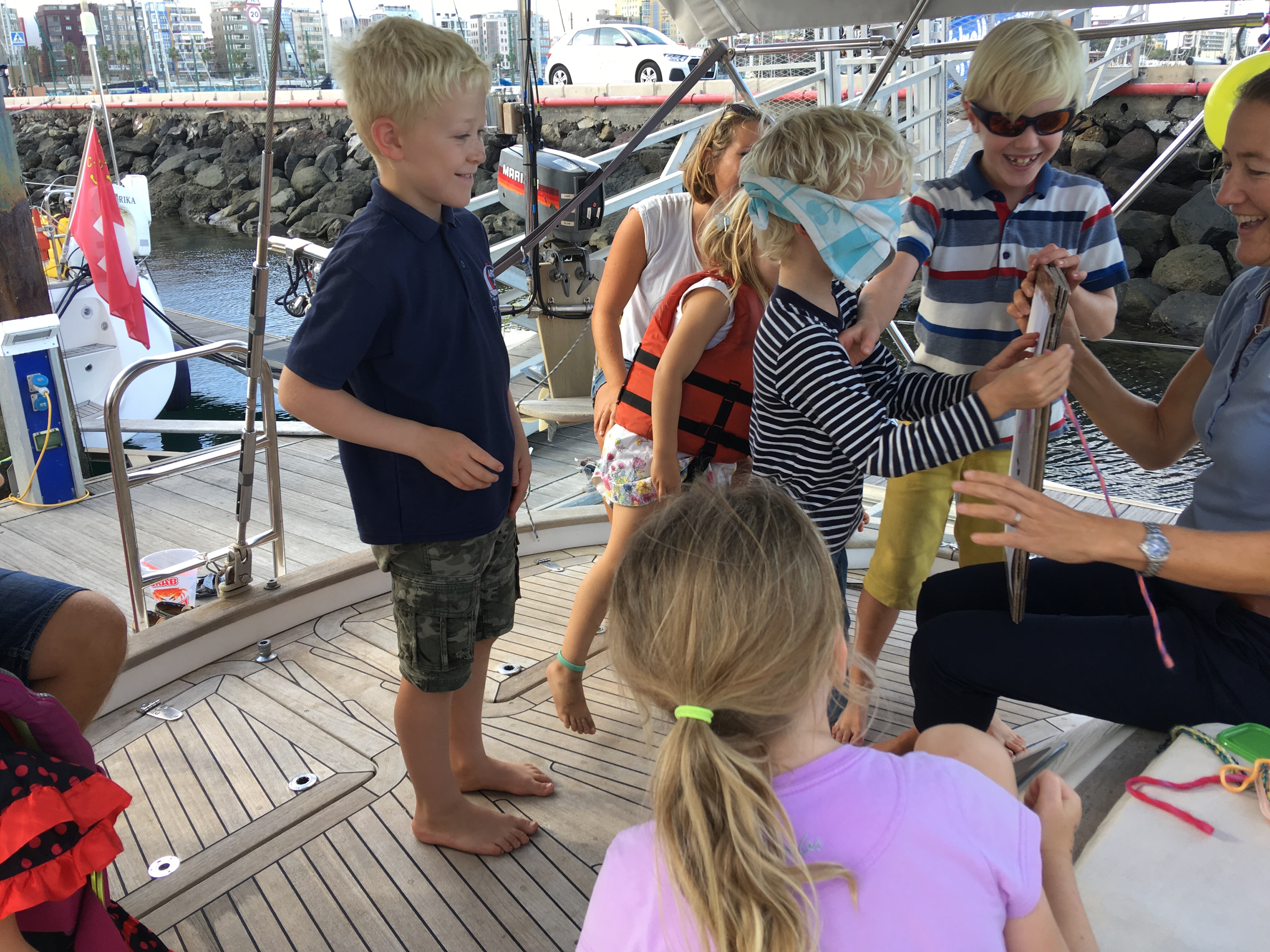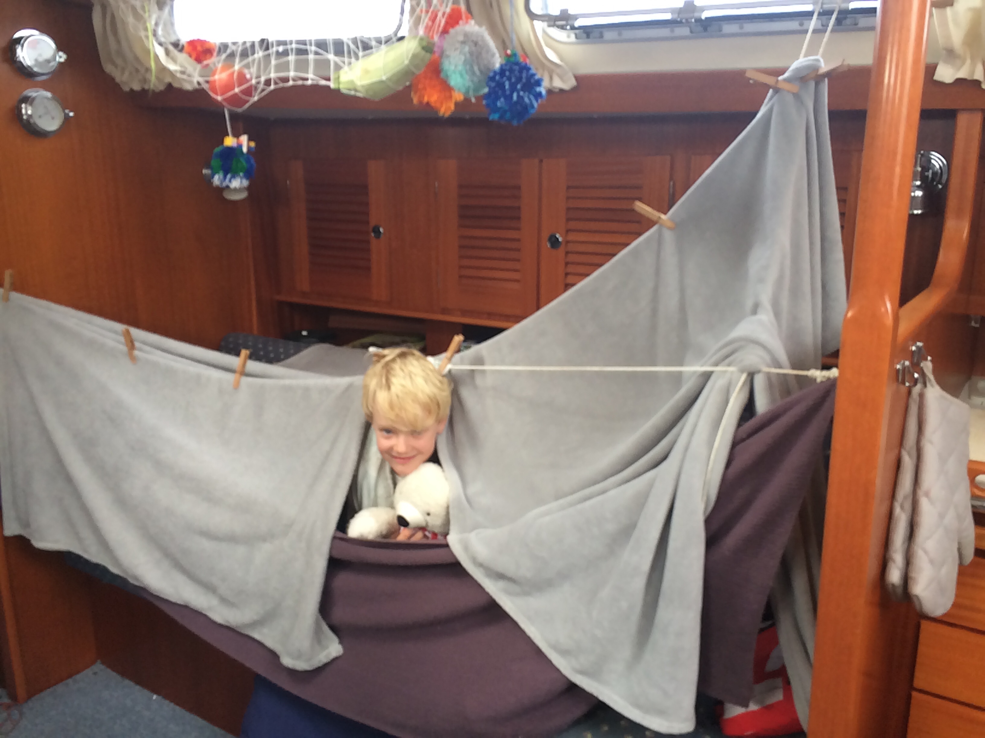 We played musical instruments, games and had fun. The boys have made about 100 pom poms enroute so they decorated the boat (outside too)!