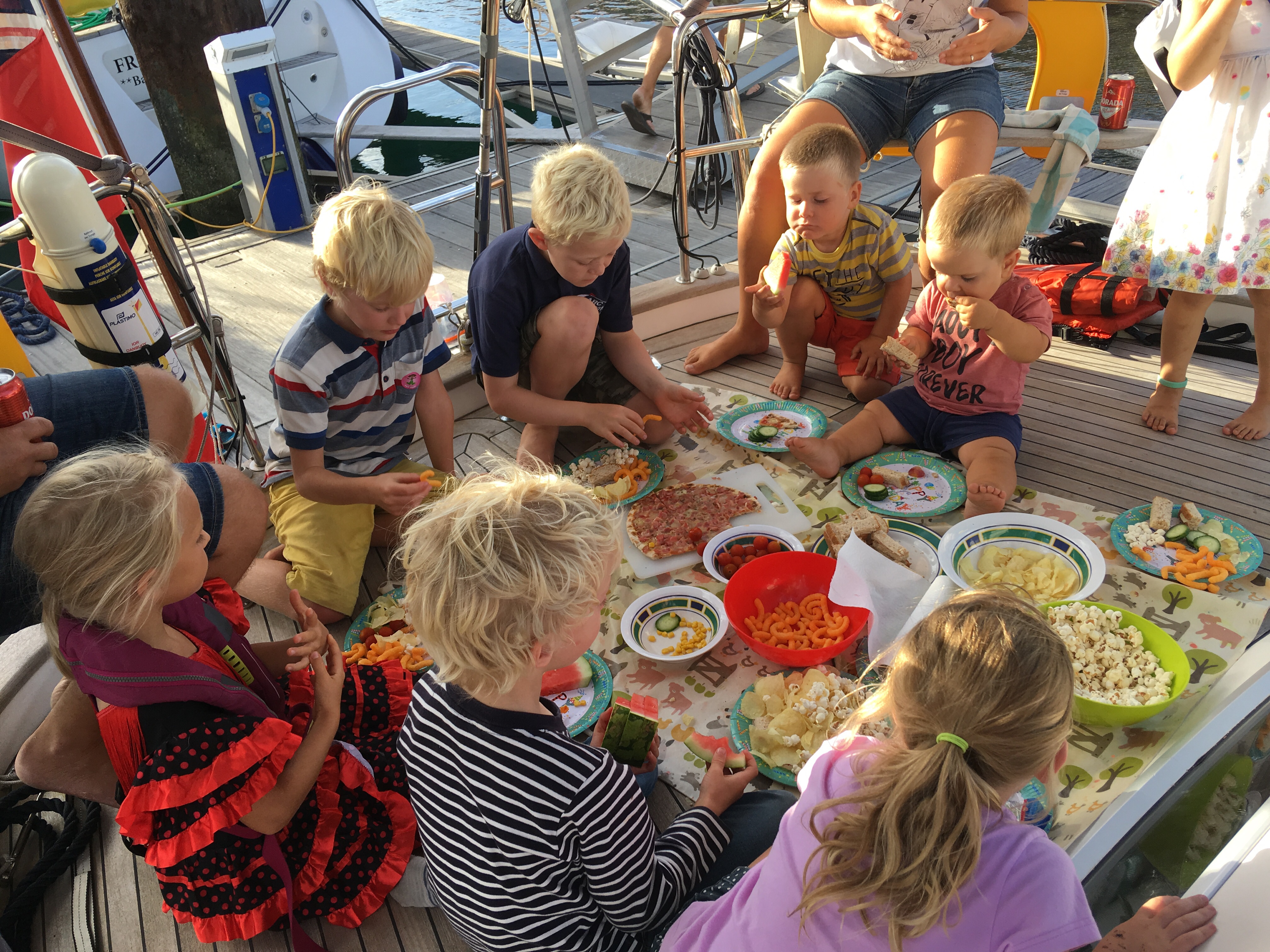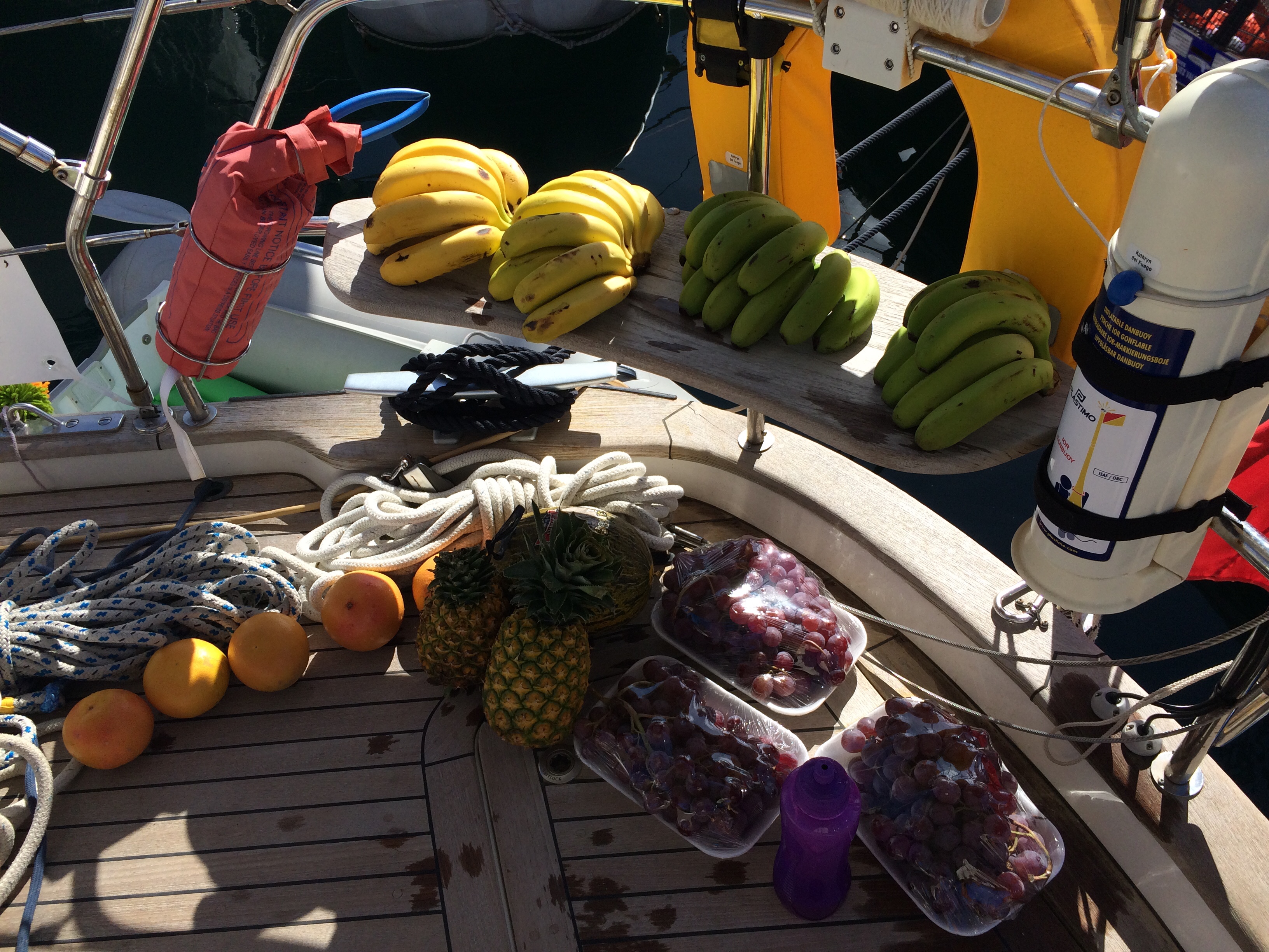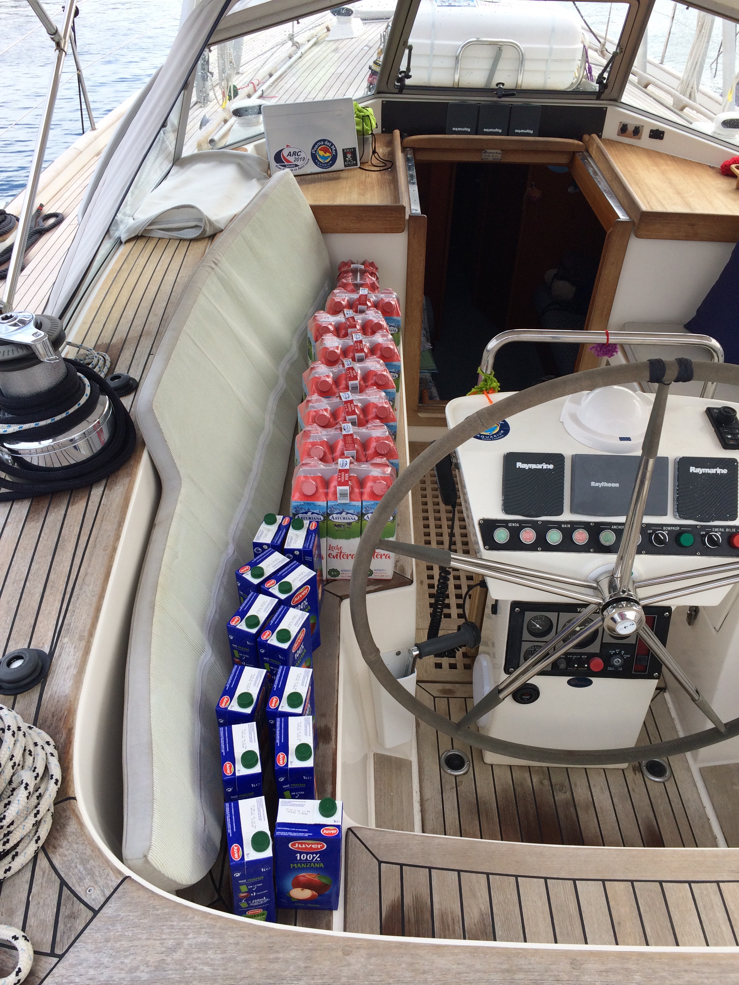 We played musical instruments, games and had fun. The boys have made about 100 pom poms enroute so they decorated the boat (outside too)!