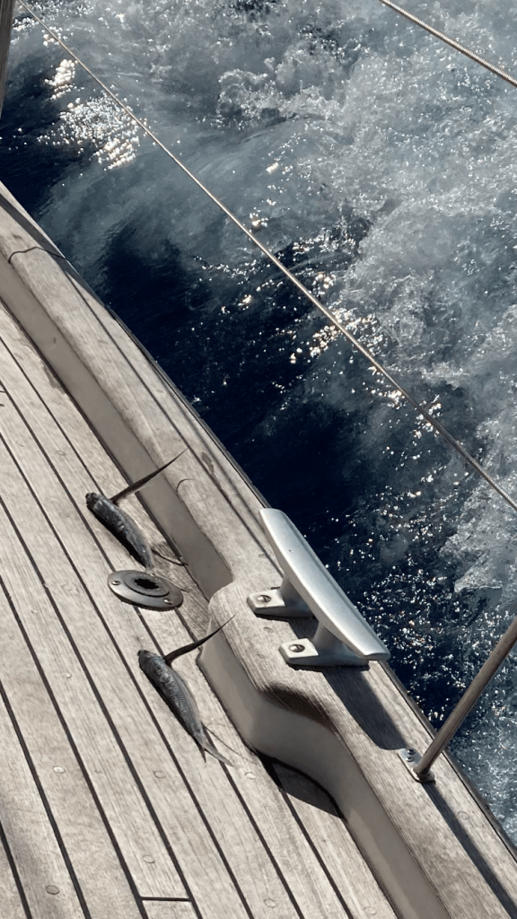 Chloe does boat school with the boys during the morning and they spend their breaks playing Lego around me on our bunk as I try in vain to sleep. I’m then up to prepare and feed everyone lunch. The afternoon it’s time for an audible book for the boys and some craft, painting, pom pom making and the like or occasionally baking with me, whilst the adults doze and read and adjust the sails.