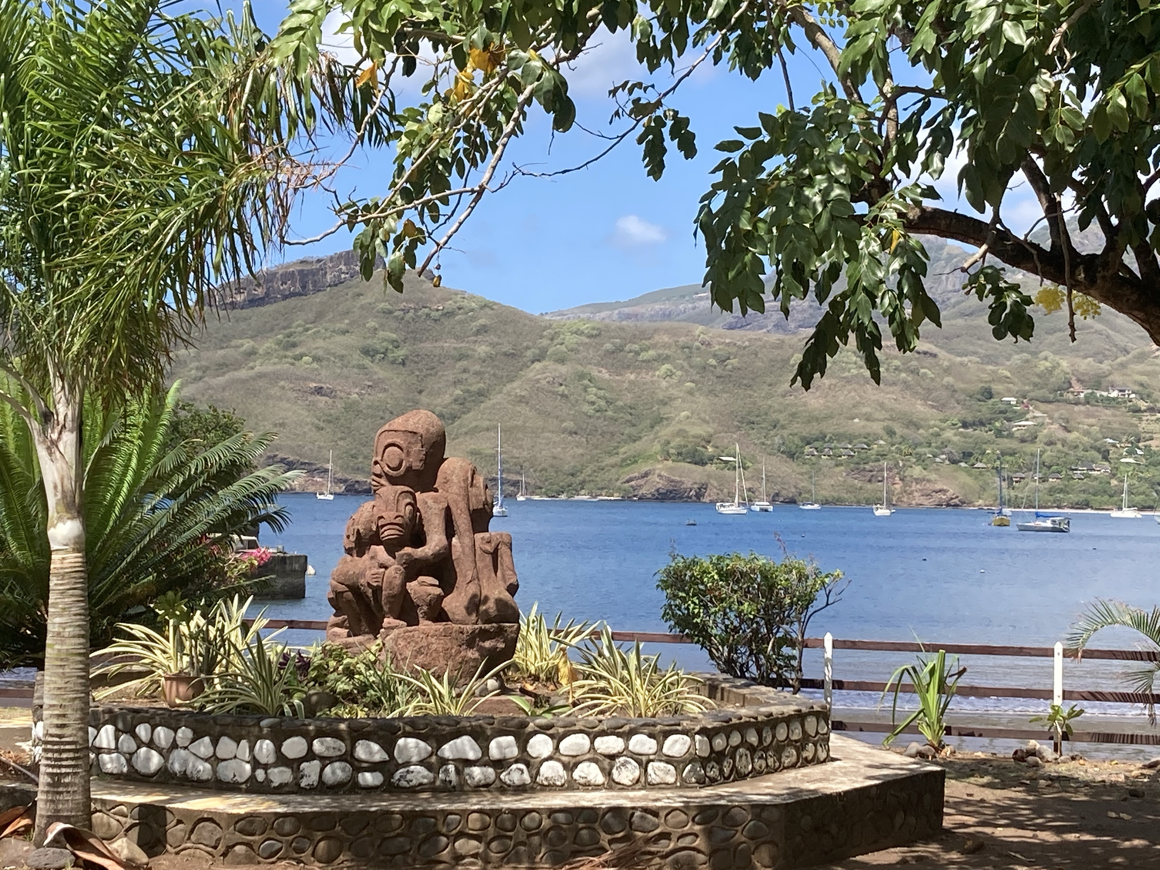 Nuka Hiva looks stunning and we are delighted to have made it before nightfall. We adjusted our clocks, we are now 10.5 hours behind the UK, ate a quick dinner and dropped into bed utterly exhausted. Exploring (and checking-in) and ringing home will start tomorrow. But the good news is that we have made it across the Pacific in record breaking time, 17 days and 7 hours. Not bad!!! That’s Force 8 sailing for you!!! The last boat to arrive here took 70 days from Panama!! Most people in the bay took 35-45 days. It took us 8 days from Panama to Galapagos and 17 to here, equivalent of 24 days total. Still very fast! Time to go slow for awhile and get into island time…
