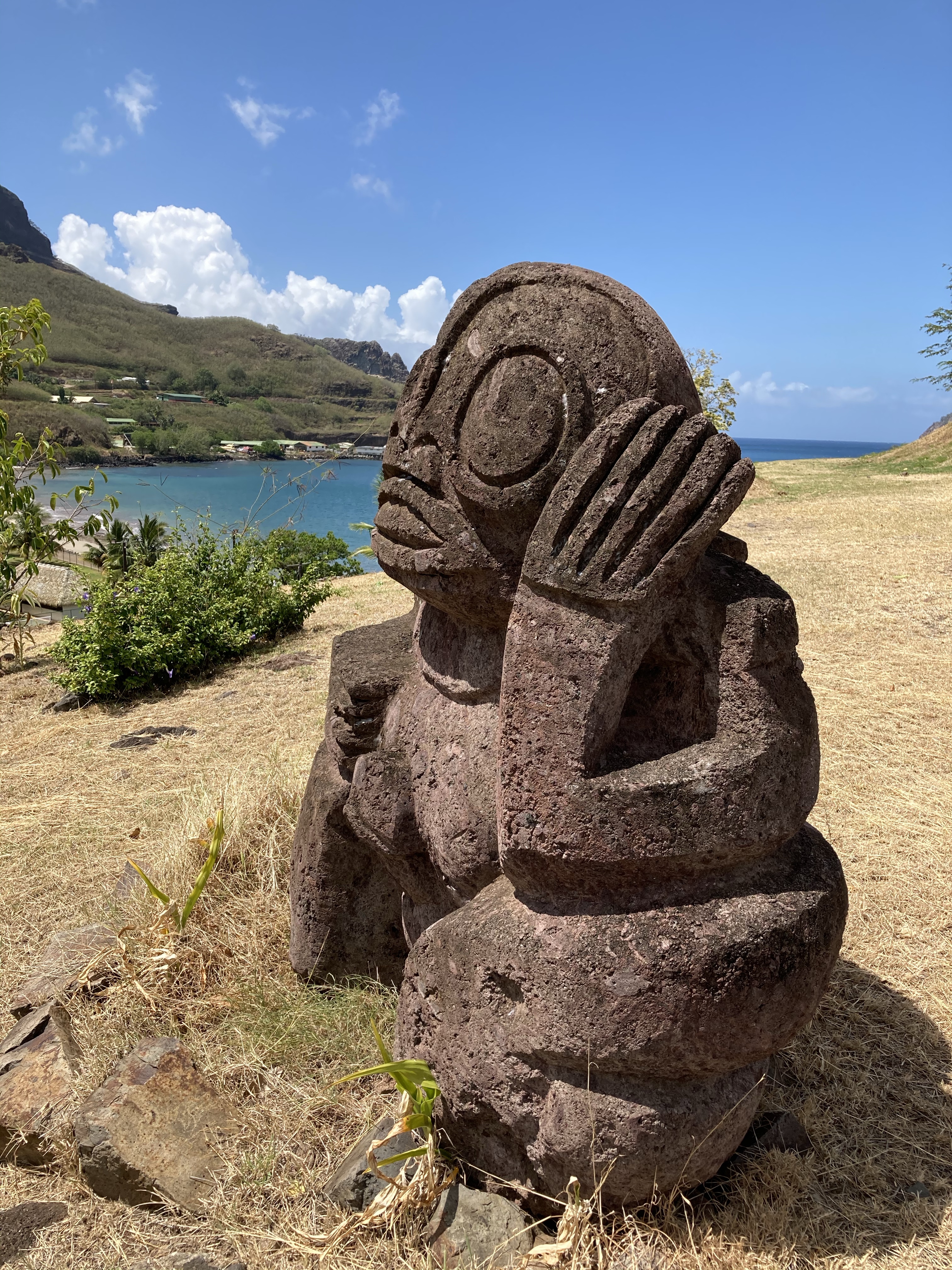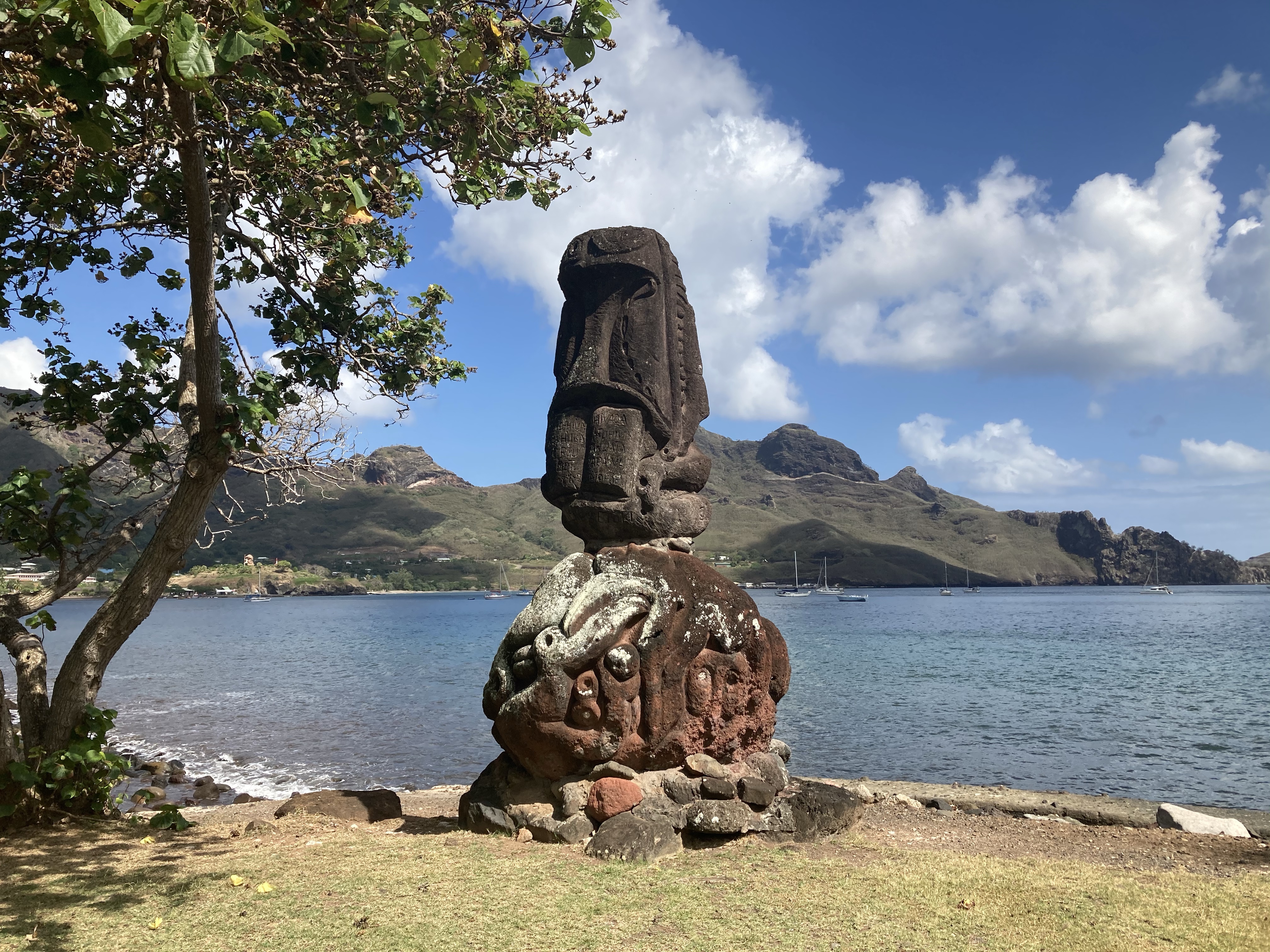 Due to COVID we have to check-in in a specific island and harbour, which slightly annoyingly means sailing past a few islands like Ua Huka first! Never mind there will be time to explore and potter back to other islands in due course. 30nm further on we finally see our island and it’s an amazing dramatic sight with steep rising cliffs from the sea. Greens and browns glinting against the blue of the sea and even the sight of other sailing boats.