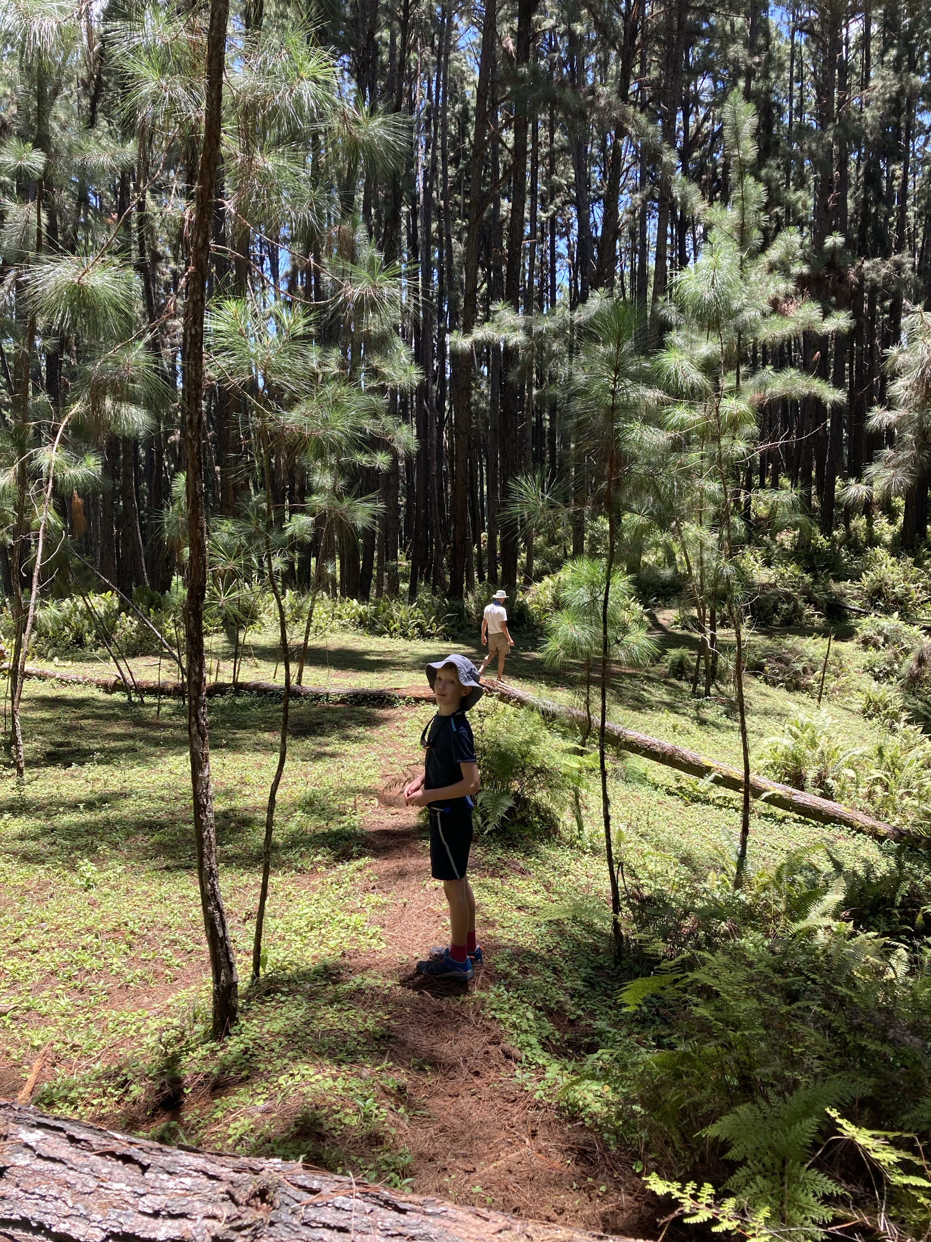 The view was breathtaking. The island is so lush and green with dramatic cliffs and soaring trees. We then hitched another lift further along the ridge to a marked hike amongst tall pine trees. It was almost like being back in Europe albeit with temperatures like an oven on full blast.