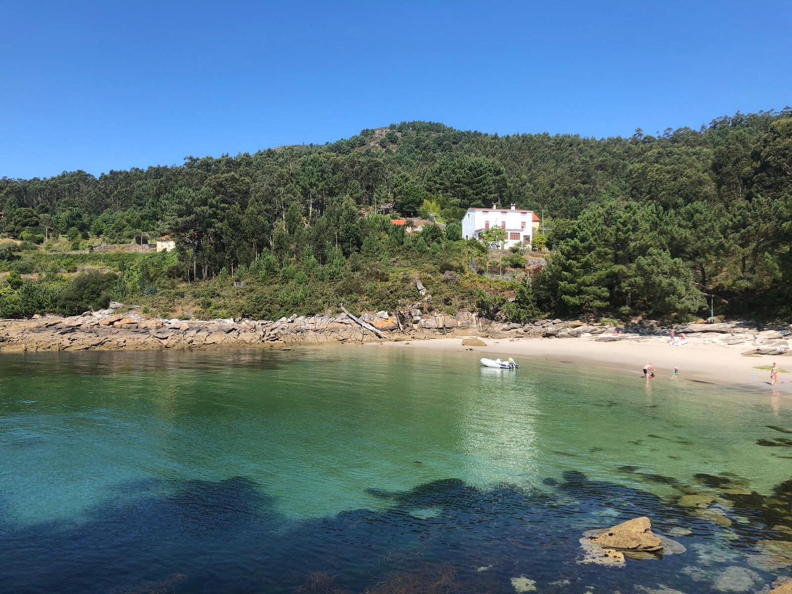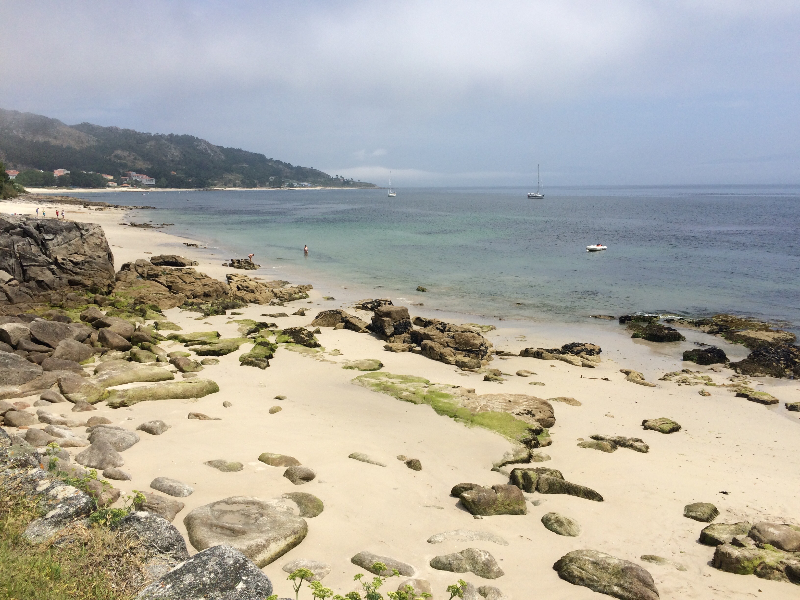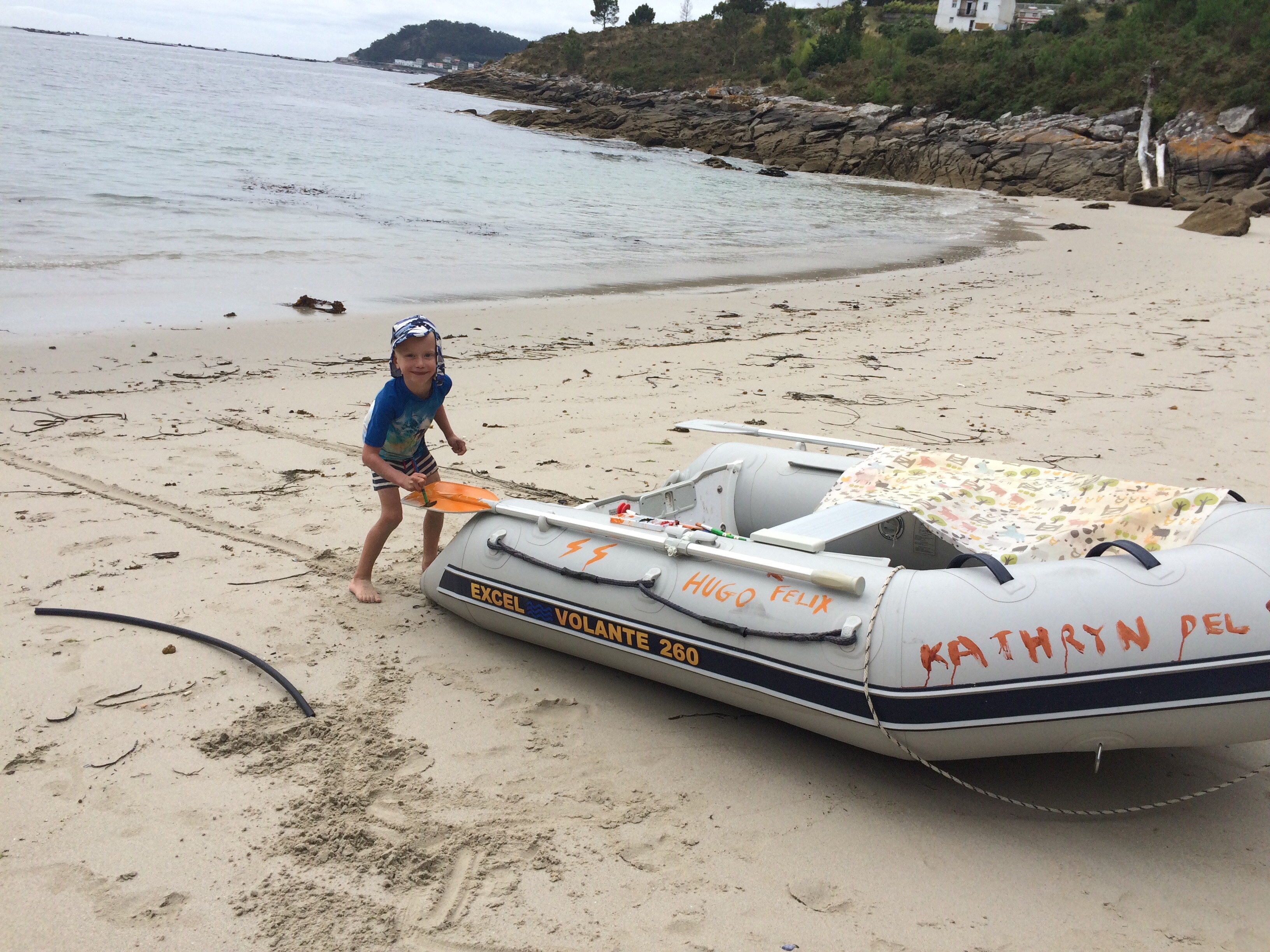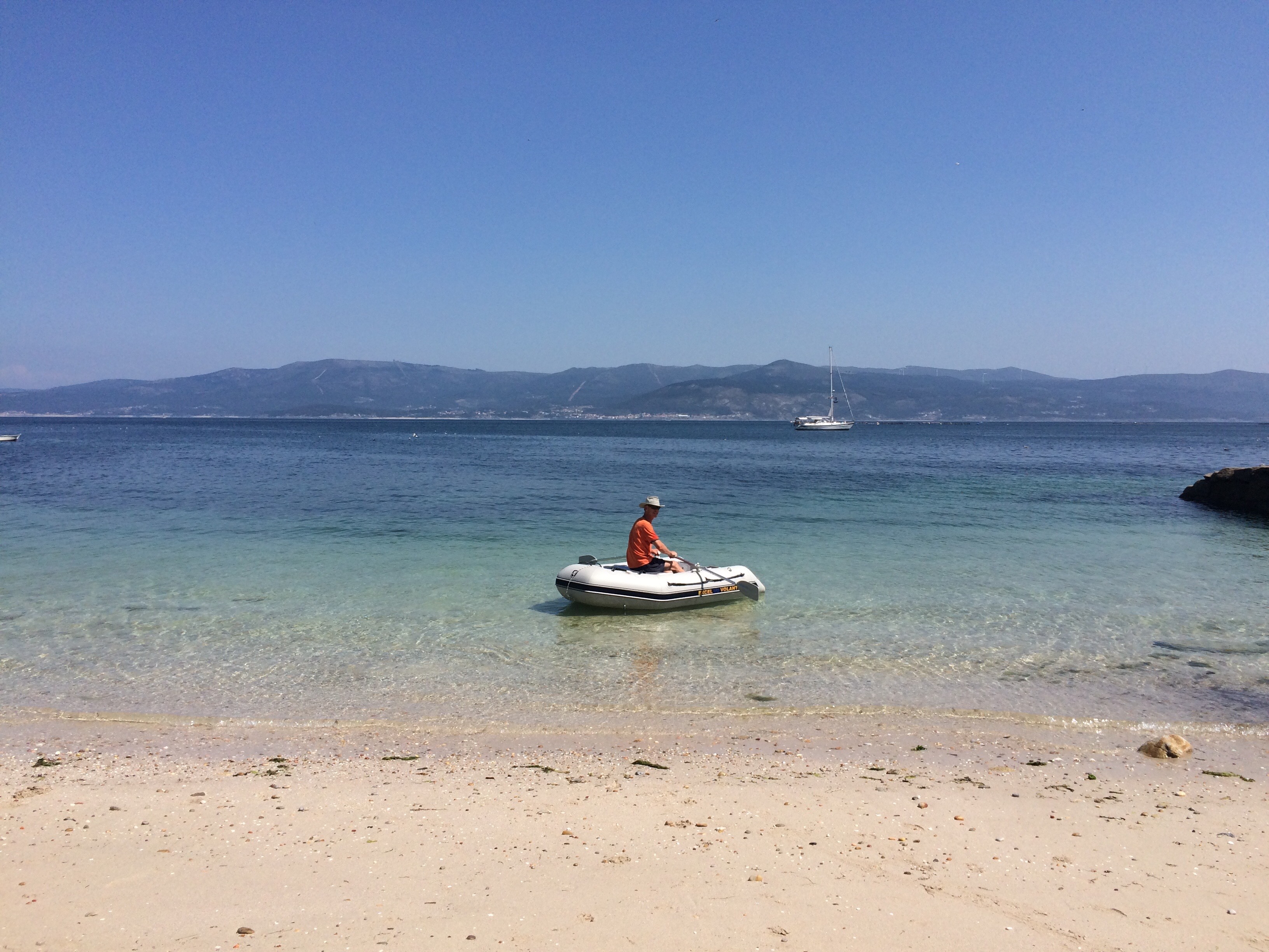 The water and beaches of Isla de Arousa and Isla Ons are amazing and we’ve parked the school lessons (for a bit) whilst we just have fun on the beaches. If you are cruising in the area, do stop at these anchorages as they are superb. I’m pretty sure the cover photo from the pilot book for Atlantic Spain and Portugal is taken from this very spot.