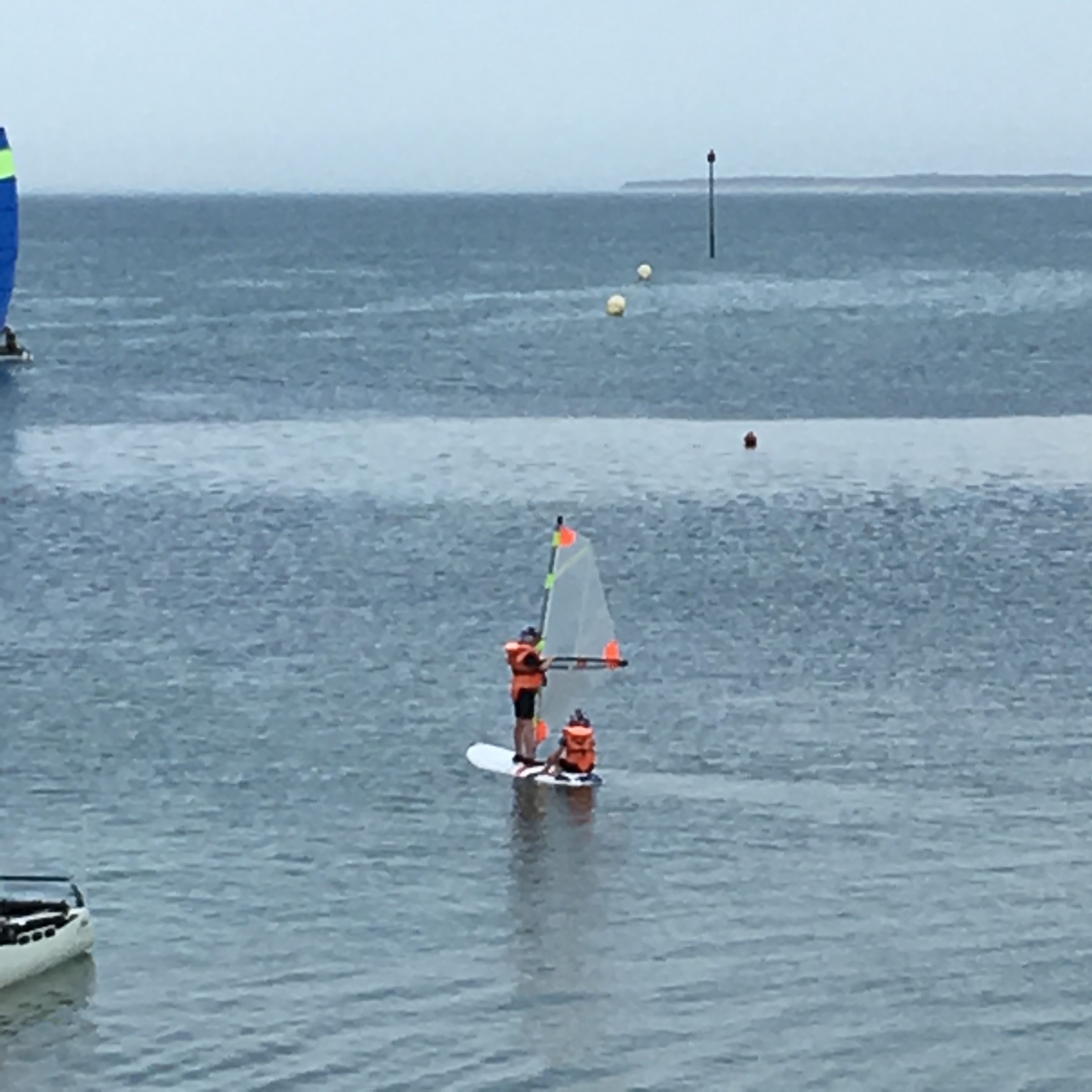 with a slightly bemused Felix sat on the back. They were a long way out before the instructor had sorted the other kids and then raced across the bay to turn Hugo round and point him back to shore!